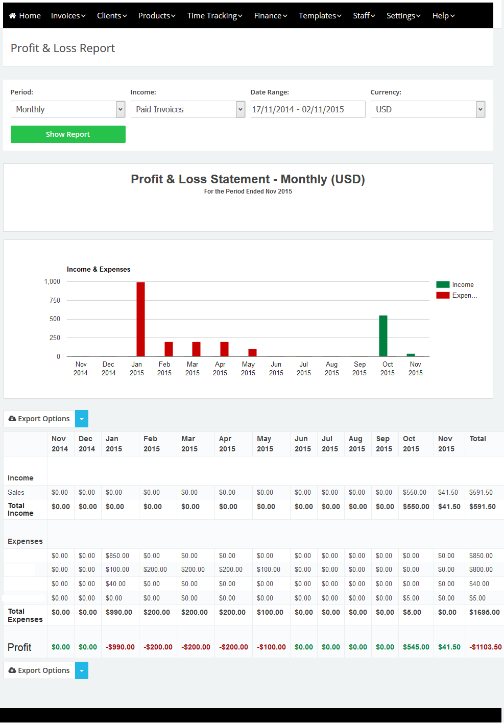 - “Income”: Select to include only paid invoices in the “Income” or all the invoices.